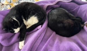 We still have Shadow the cat and Mr Socks who we adopted over a year ago in 2024. They are not best buddies, but they tolerate each other enough now that when they share the bed they are almost touching.